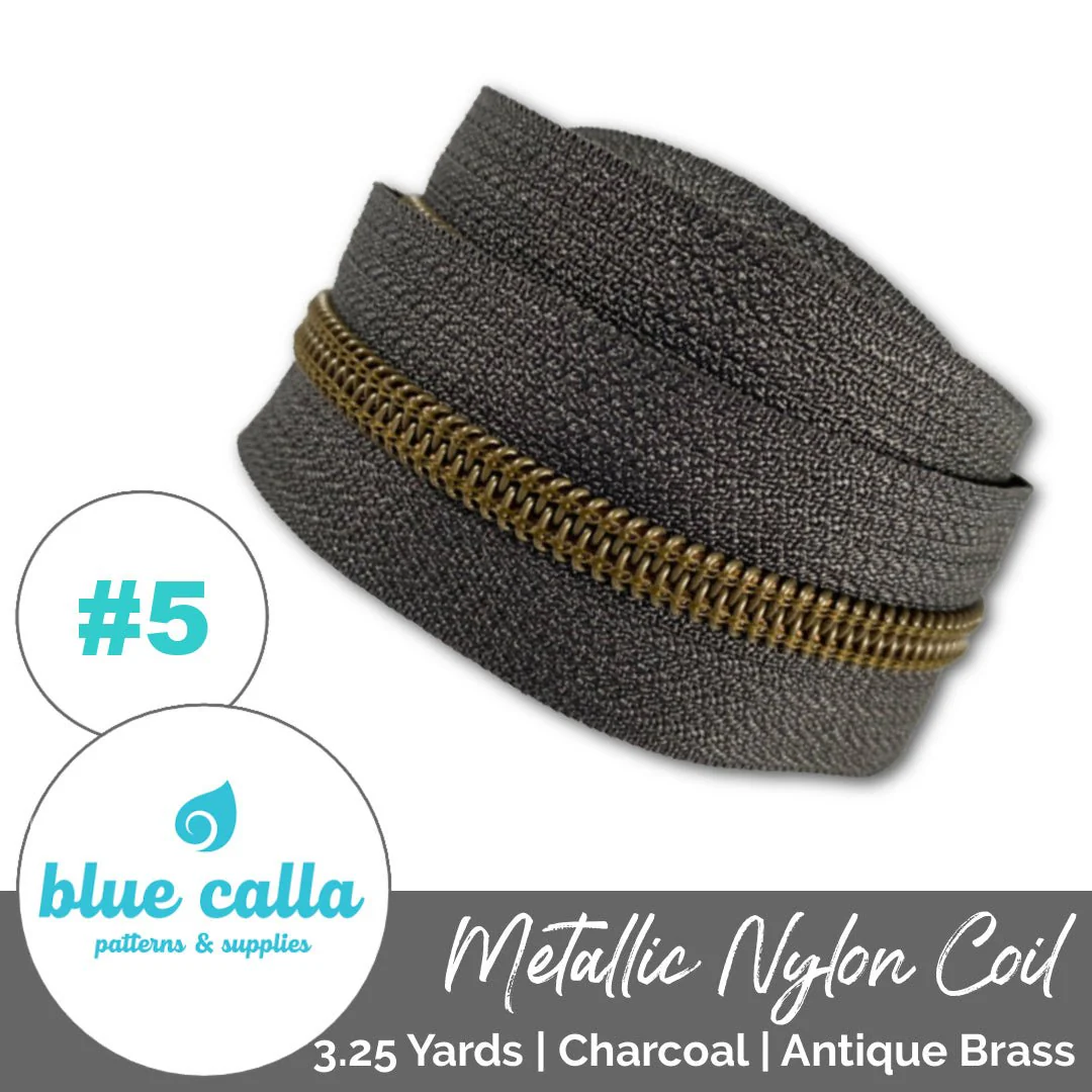 Charcoal | Blue Calla Nylon Coil Zipper | SIZE#5* (3.25 Yards)