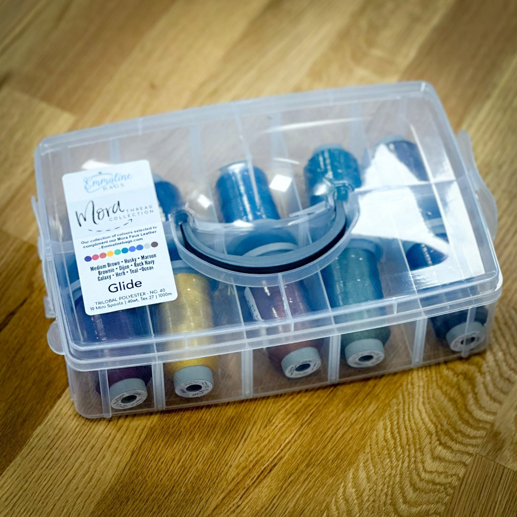 With the permission of the producers of Glide thread, we have curated a special, hand picked colour collection to correspond with our most popular Mora faux leather colours. This value pack is priced to get 10 spools, for the price of 9. (Thread match for Charcoal not included due to space!)